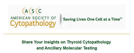 Η American Society of Cytopathology μας προσκαλεί να συμμετάσχουμε σε μια σύντομη έρευνα. Η έρευνα συγκεντρώνει πληροφορίες σχετικά με τις τρέχουσες πρακτικές στις Παρακεντήσεις του Θυρεοειδή αδένα, με ιδιαίτερη έμφαση στις επικουρικές μοριακές εξετάσεις. Η συμπλήρωσή της διαρκεί μόνο λίγα λεπτά και οι απόψεις θα είναι πολύτιμες για την κατανόηση των σύγχρονων τάσεων στην κλινική πρακτική. Πατήστε εδώ για την έρευνα