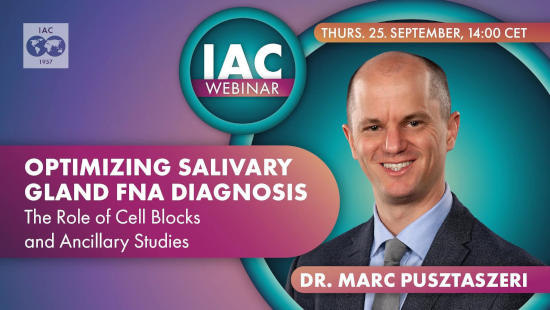 Η International Academy of Cytology μας δίνει ξανά ραντεβού διαδικτυακά στο επόμενο webinar της, με θέμα:"Current Concepts and Diagnostic Significance of Molecular Alterations in Salivary Gland Cytopathology" απο τον Prof. Dr. med. Niels J. Rupp, στις 16 Οκτωβρίου στις 14:00???? (European Central Summer Time)